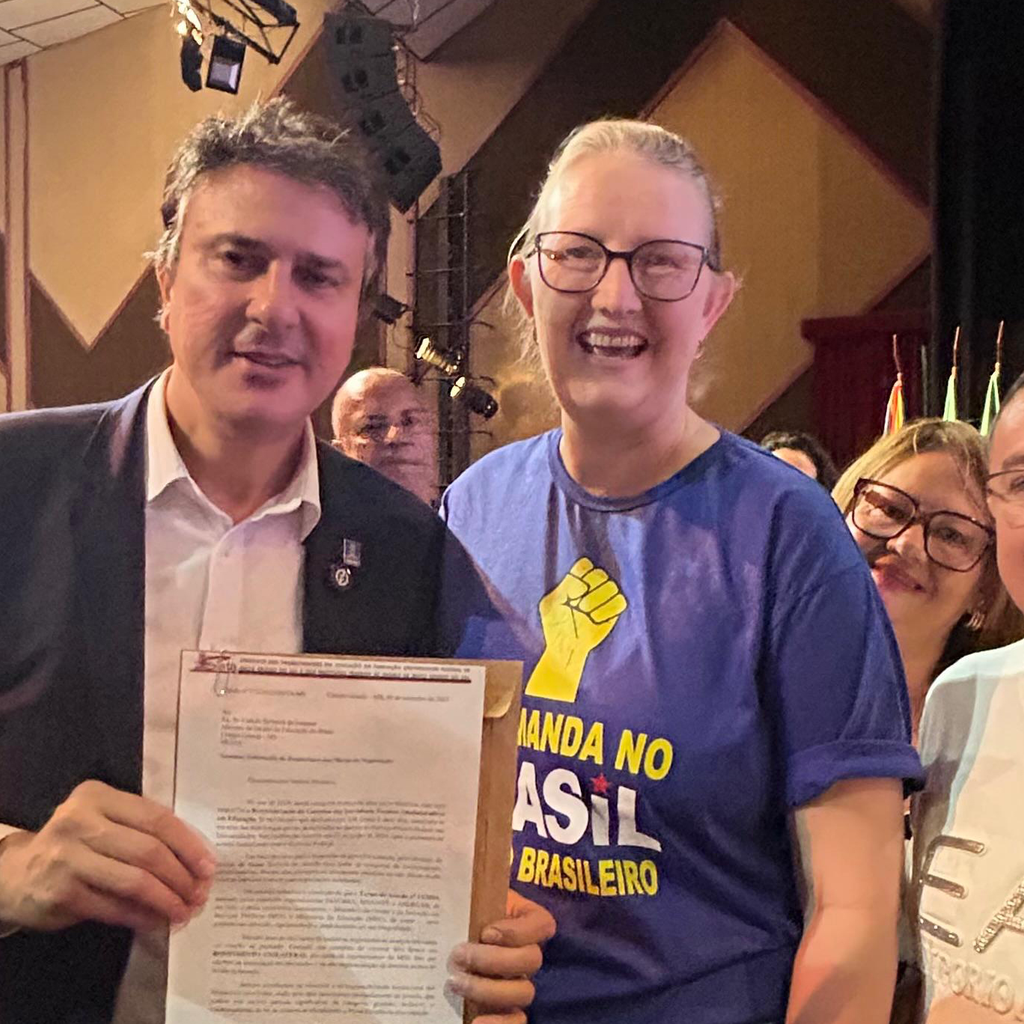 Durante a atividade, Adriane Lucelli Maier aproveitou a presença do ministro para entregar uma carta reivindicando o cumprimento do Termo de Acordo de Greve nº 10/2024, assinado em 27 de junho de 2024 entre representantes do governo federal e dirigentes do movimento sindical.