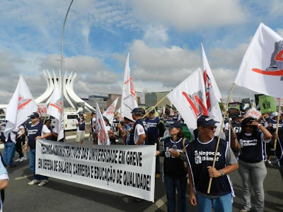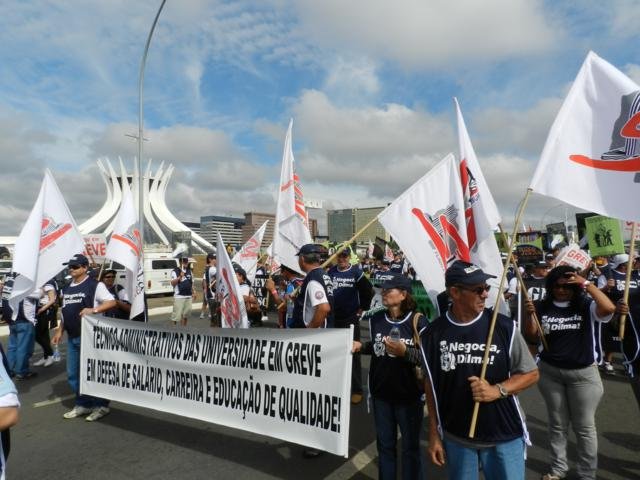 Filiados do SISTA empunham bandeiras e faixas na Esplanada dos Ministérios, durante marcha de greve em 2012