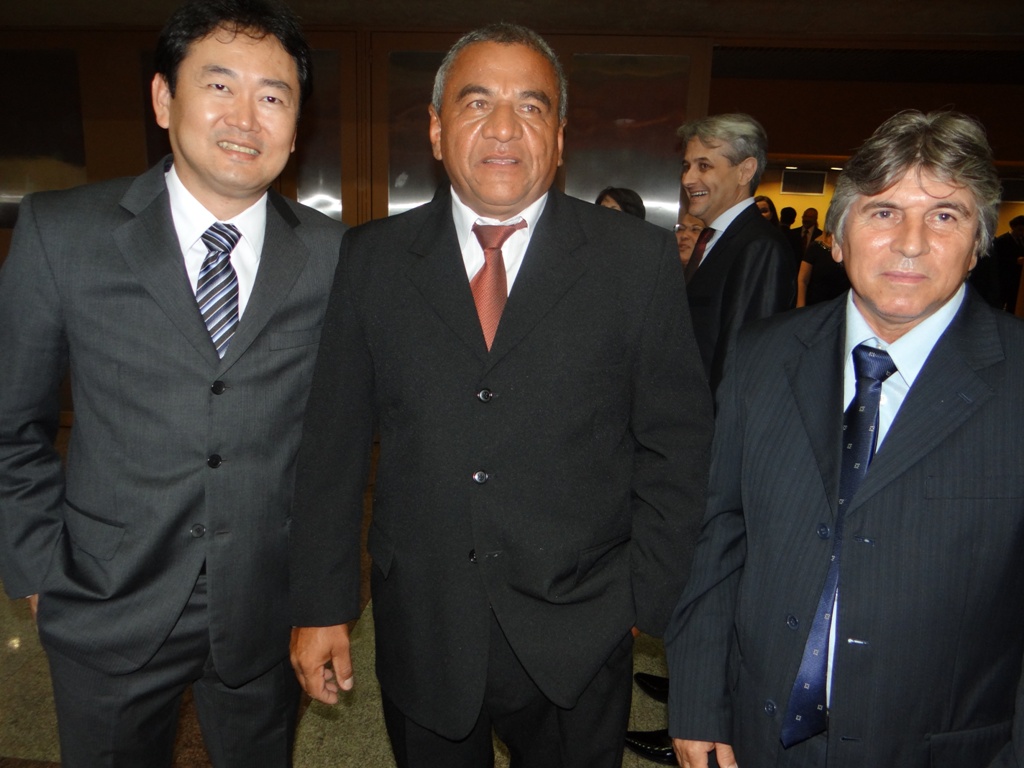 Luiz Carlos Vasconcelos e Adhemar Vilela ladeiam o desembargador Tarcisio Valente, presidente do TRT 23 (Mato Grosso) e do Colégio Nacional de Presidentes e Corregedores