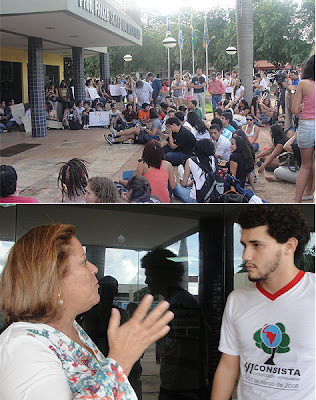 A reitoria Célia Maria de Oliveira surpreendeu os alunos na trade de ontem, que esperavam passar a noite na universidade, até que a reitora os atendesse e, cerca de 20 minutos depois do início da manifestação, desceu para conversar com os alunos.