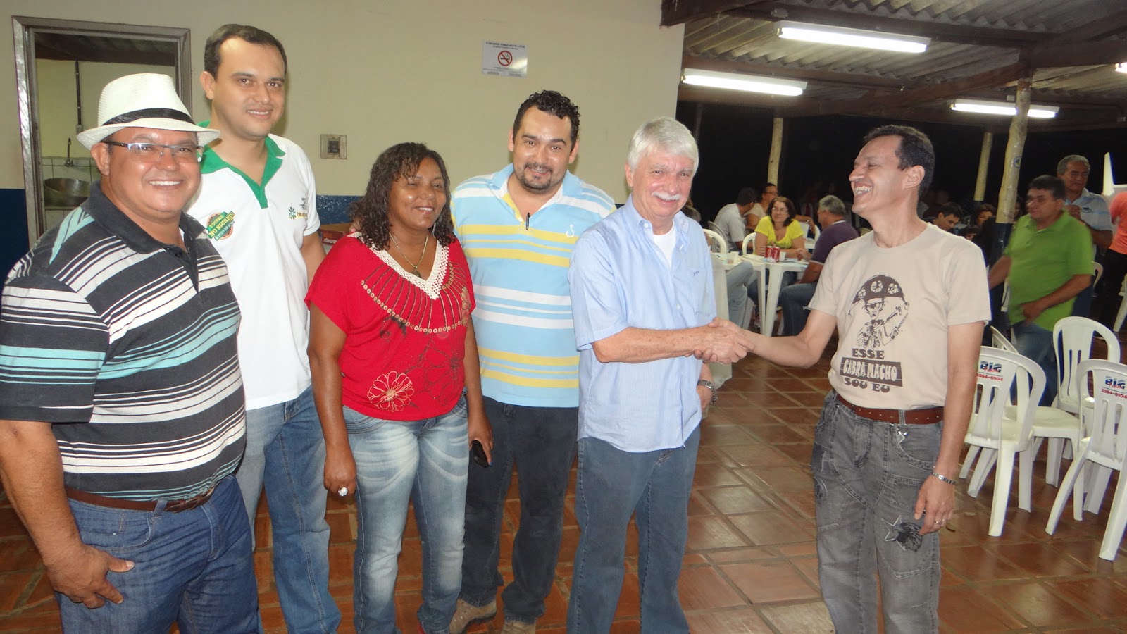 Márcio Saravi, da coordenação geral do SISTA cumprimenta o presidente Assufms, Arnaldo Gasparini, acompanhado por Geraldo Rodrigues, pelo gerente da unidade da Sicredi UFMS, Alex Ferreira, Maria Arcanjo e Gustavo Ferreira