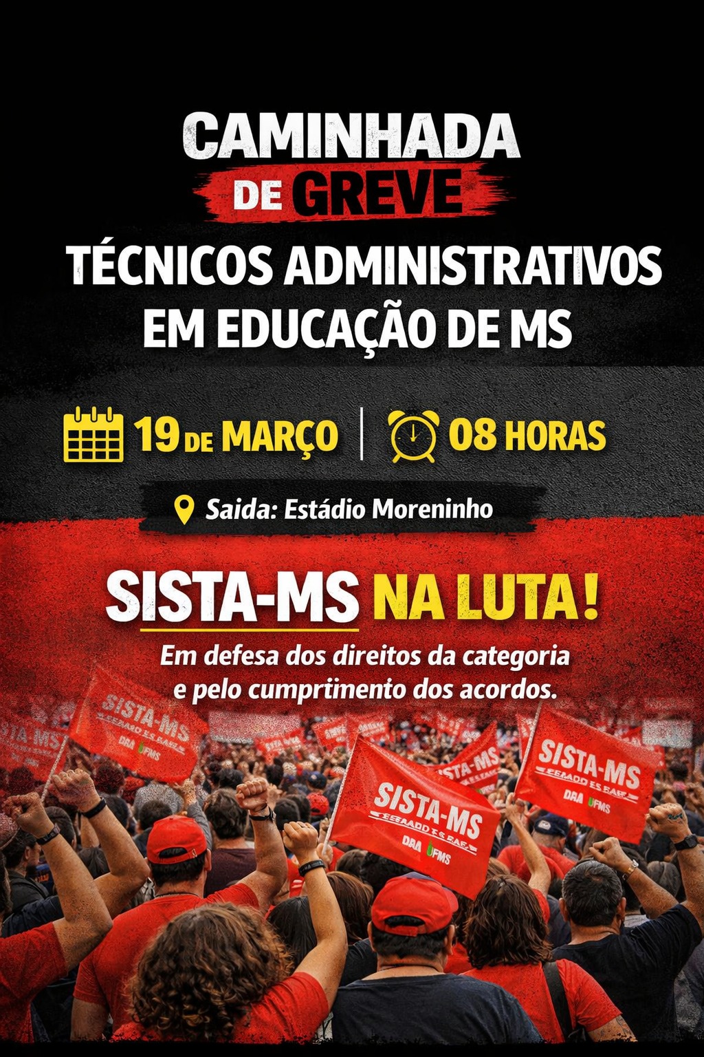 O SISTA-MS destaca que a luta continua e reforça a convocação para que os servidores participem da caminhada, fortalecendo o movimento em defesa dos direitos da categoria.