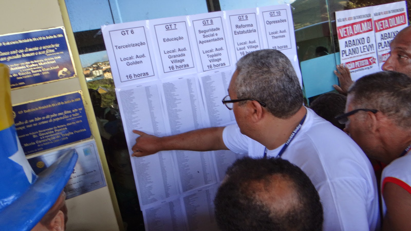 Os grupos de trabalho discutem a realidade do presente e os desafios do futuro na carreira e na vida. Espalhados nos auditórios e espaços coletivos do complexo hoteleiro em Poços de Caldas-MG, os grupos de trabalho abordam os seguintes temas: conjuntura nacional e internacional; organização e estrutura sindical; relação de trabalho e concepção de Estado; HU x Ebserh; carreira e jornada de trabalho; terceirização; educação; seguridade social e aposentados; reforma estatutária; e opressões.