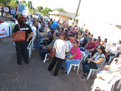 Mais de 300 pessoas presentes à assembléia. Foi assim que os trabalhadores técnicos administrativos da UFMS responderam a chamada do Comando Local de Greve (CLG) e deram mais uma demonstração de união na manhã desta quinta-feira (11). Reunidos na entrada do Hospital Universitário (ao lado da guarita), foi realizado um ato de greve histórico, com espírito de luta renovado e disposição de fortalecer cada vez mais o movimento de paralisação.