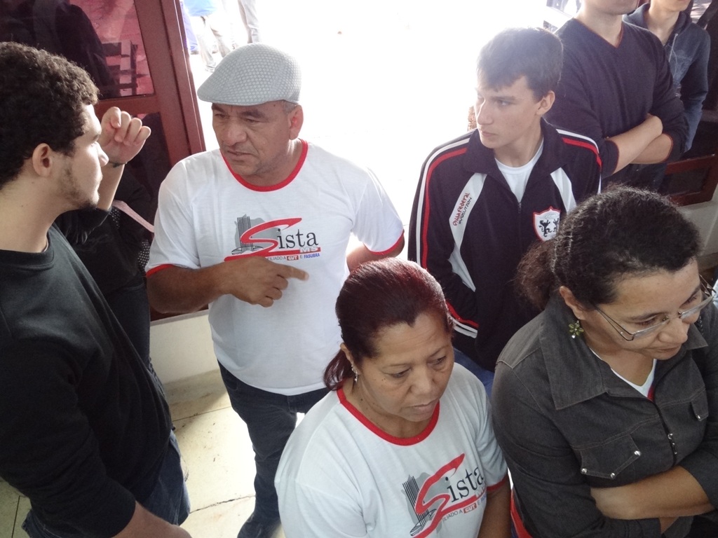 Membros da coordenação estadual do SISTA na assembleia dos estudantes, no RU da UFMS