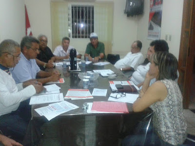Adilson Oliveira e Luiz "Vasco" ( a esquerda), do Comando Local de Greve da UFMS, em reunião com as demais categorias do serviço público, preparatória para o ato do dia 25