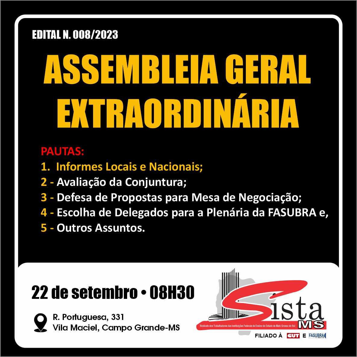 Edital nº 008-2023 - Assembleia Geral Ordinária do SISTA-MS