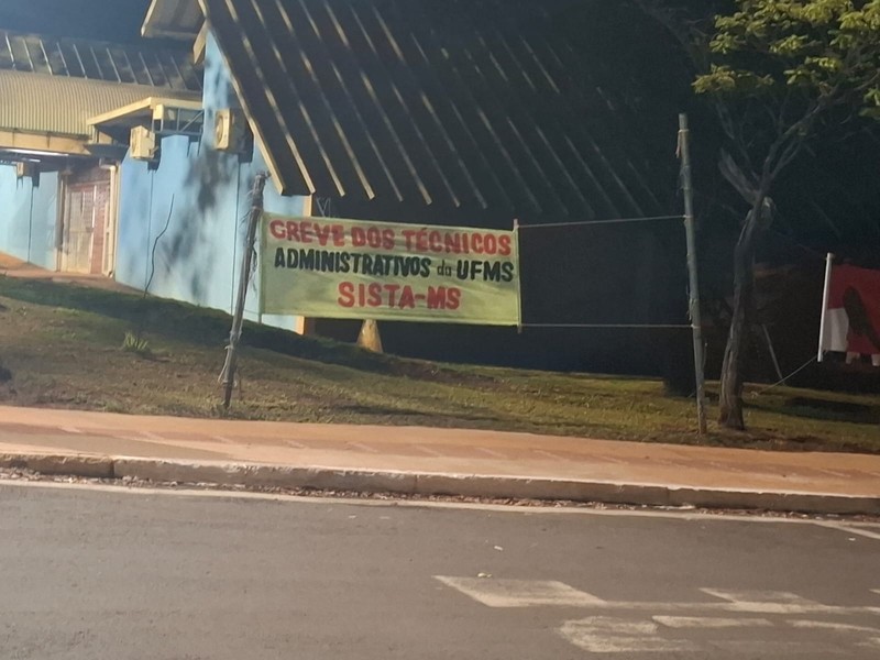 SISTA-MS instala faixas em apoio à greve dos Trabalhadores Técnico-Administrativos da UFMS
