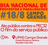 Ato em frente à UFMS nesta quarta (18): Dia de Luta contra a reforma Administrativa e por direitos mobiliza trabalhadores