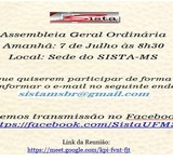AMANHÃ, 7 de julho, Assembleia Geral Ordinária do SISTA-MS com transmissão online. Servidores Ativos, Aposentados e Pensionistas, participem!