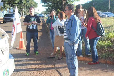 Um despertar para a luta. Assim foram as primeiras horas da manhã deste dia 20 de agosto na UFMS. A coordenação do SISTA/MS deu apoio ao CLG e dezenas de pessoas compareceram na entrada da Cidade Universitária para expor o movimento de paralisação.