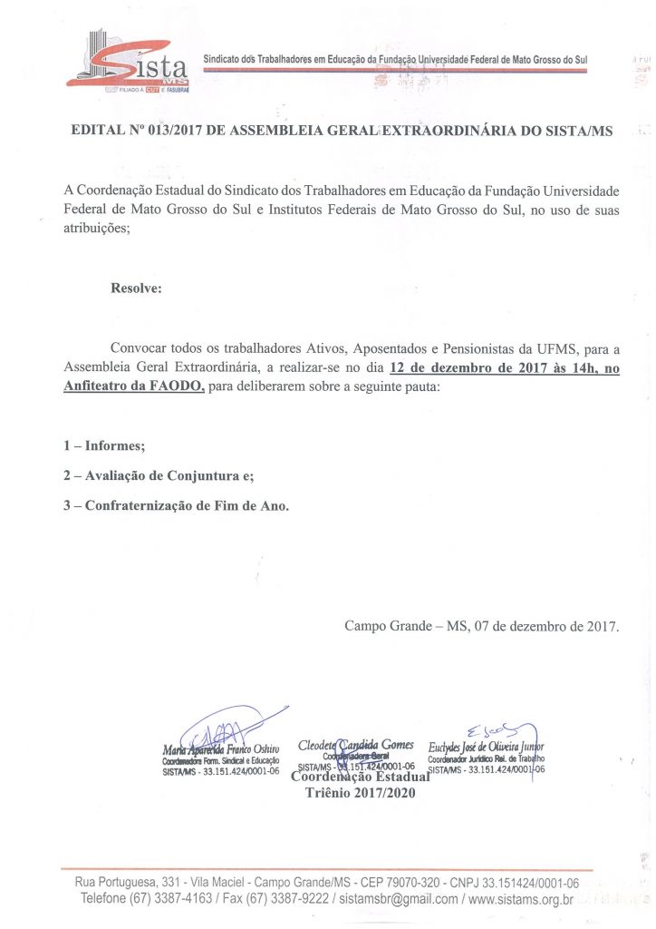 Assembleia Extraordinária Dezembro
