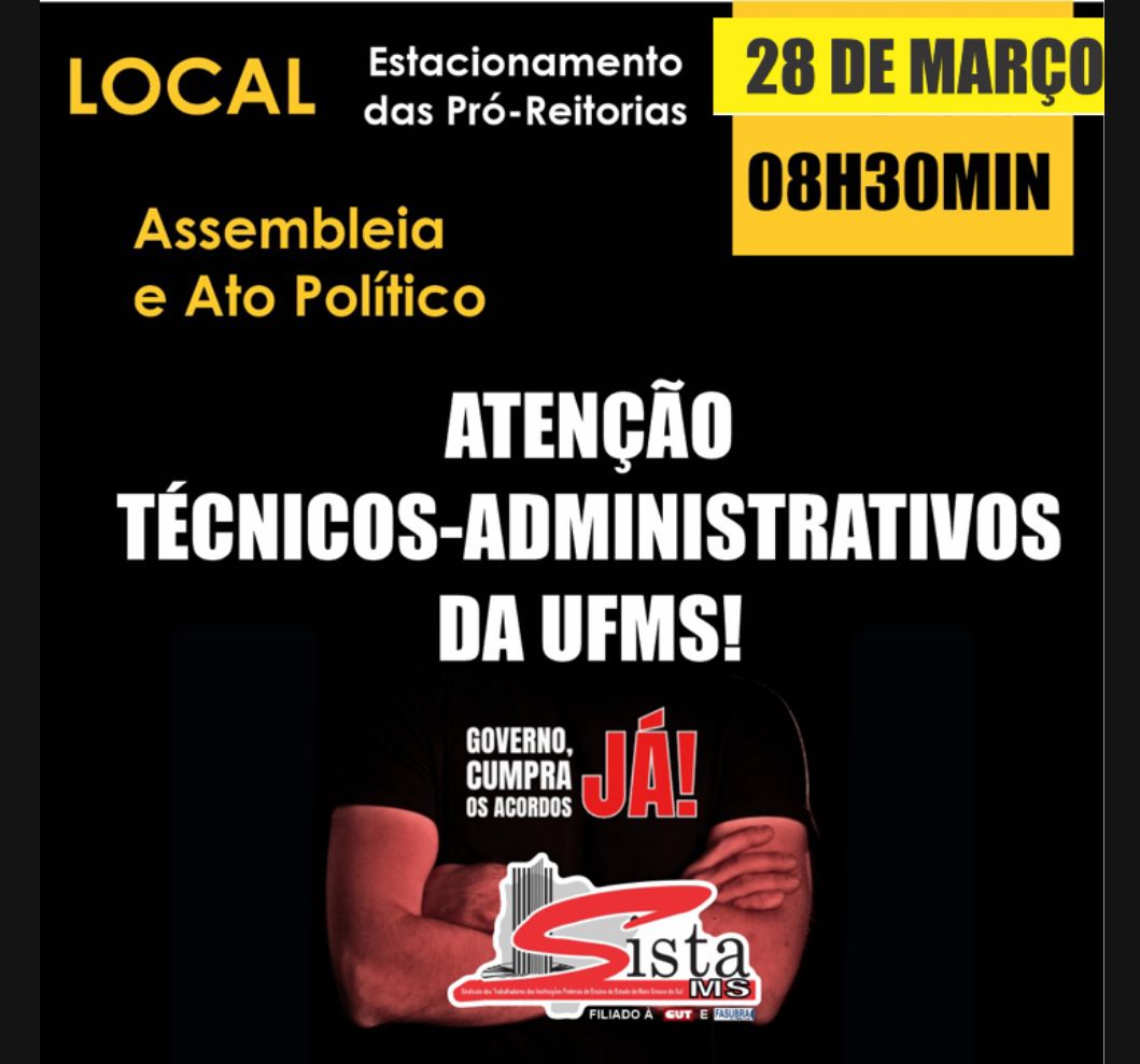 Participem da Assembleia e do Ao Político, marcado para iniciar às 08h30min, no Estacionamento das Pró-Reitorias.