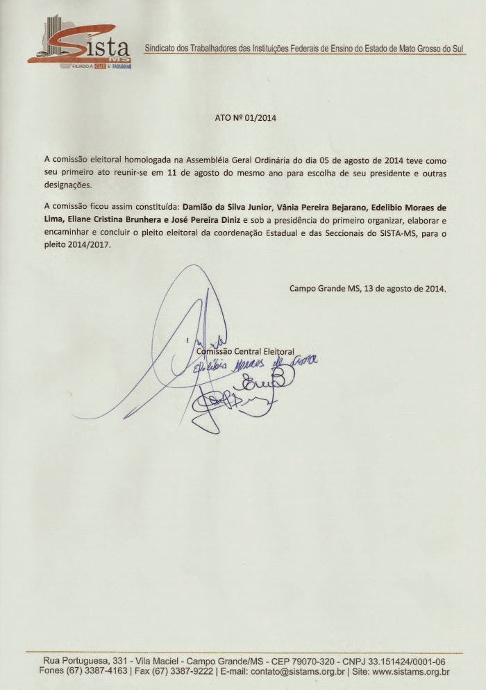 Ato Administrativo nº 01-2014 - Comissão Eleitoral Central