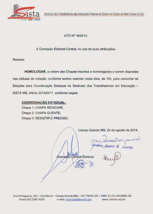 Ato nº 16-2014 - Comissão Eleitoral Central