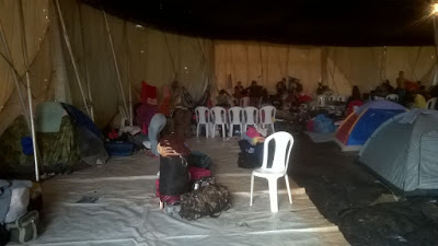 Abrigo improvisado em tenda: Viagem não foi turismo