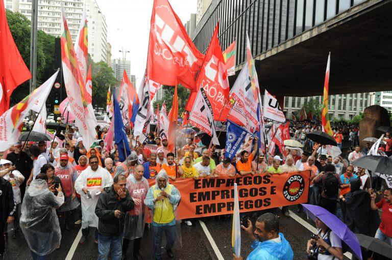 No dia da visita do presidente Jair Bolsonaro à Fiesp (Federação das Indústrias do Estado de São Paulo), segunda-feira (3), milhares de manifestantes foram à Avenida Paulista, em São Paulo, e mesmo debaixo de chuva protestaram contra a estagnação econômica, o desemprego e a precarização no mundo do trabalho. O ato reuniu dirigentes sindicais, trabalhadores, ativistas sociais e estudantes que, após expressiva concentração em frente ao Masp (Museu de Arte de São Paulo), seguiram em passeata até às proximidades da Fiesp. No portal Rádio Peão Brasil.“Precisamos de desenvolvimento e isto só é possível com industrialização, empregos de qualidade para todos, manutenção e ampliação dos direitos trabalhistas, sociais e previdenciários da classe trabalhadora e preservação da soberania e das riquezas nacionais”, disse o presidente da Força Sindical, Miguel Torres.