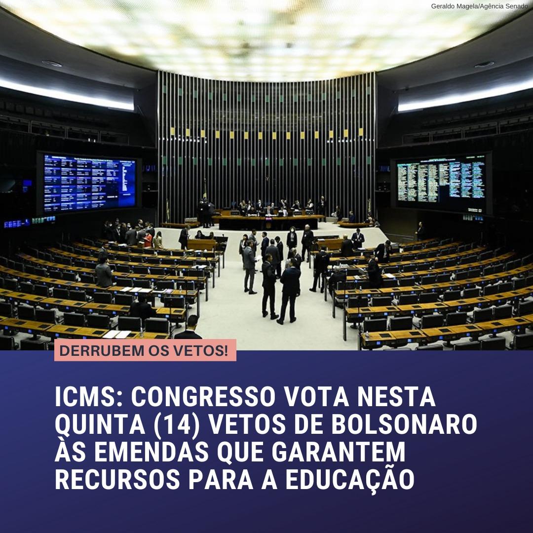 Os vetos do presidente Jair Bolsonaro ao PLP 18/2022, que deu origem à Lei Complementar nº 194 (desoneração do ICMS), acarretarão perdas de mais de R$ 20 bilhões apenas na área da educação pública. A votação desses vetos está prevista para esta quinta-feira (14), a partir das 10h. Temos que estar mobilizados para pressionar senadores/as e deputados/as para que eles/as derrubem esses vetos do governo. Veja a seguir como fortalecer esse movimento.