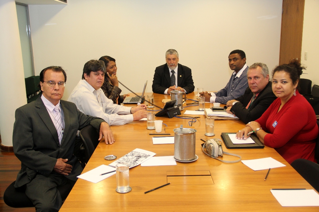 Coordenador geral do SISTA, Lucivaldo Santos (camisa azul) com o presidente da CUT-MS, Jefferson Borges (e) e diretores da Fasubra durante audiência na Secretaria Geral da Presidência da República, em Brasília