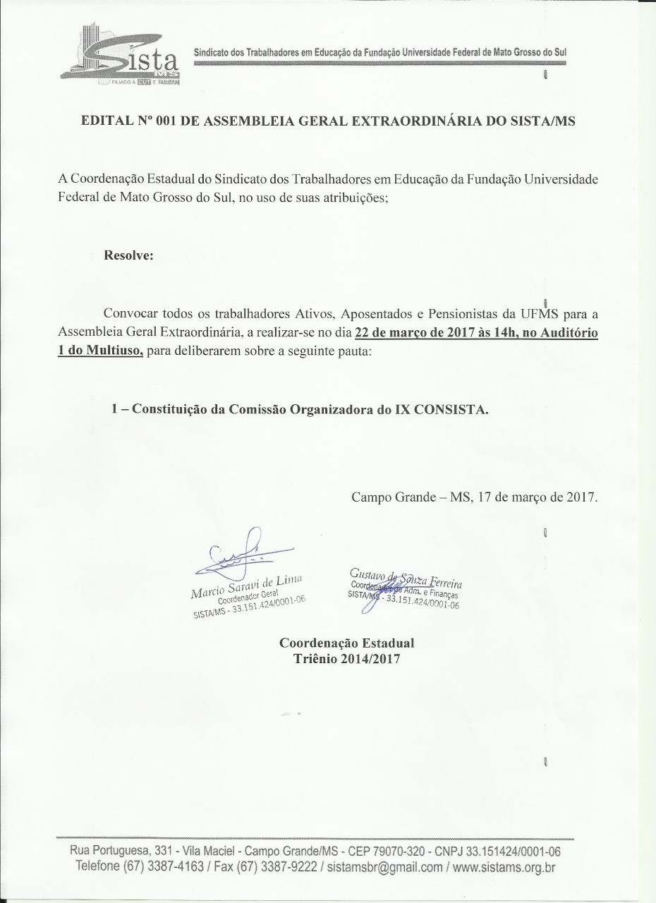 SISTA-MS INFORMA - Lista para entrega dos brindes – filiados que ainda não retiraram: