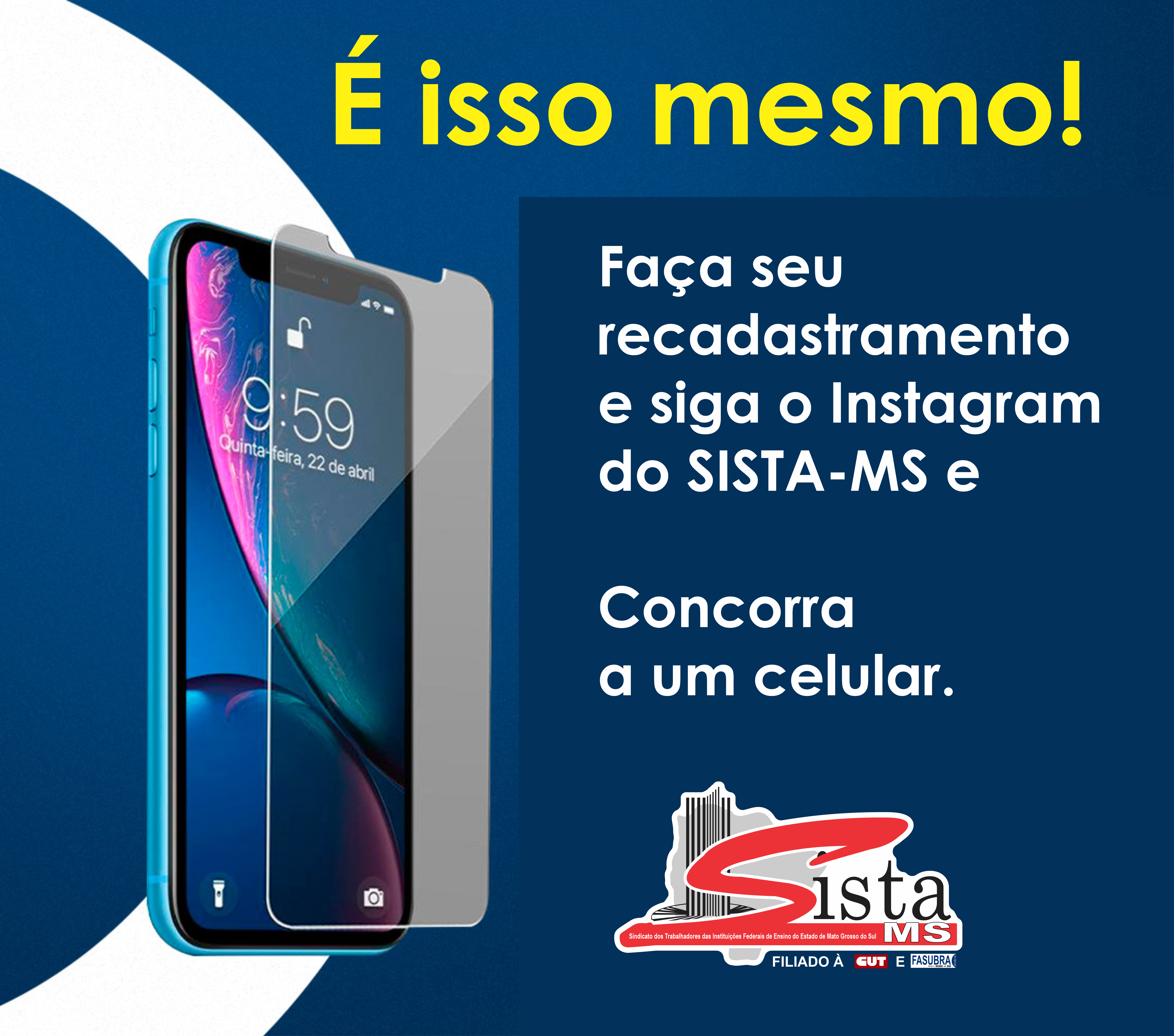 Faça seu recadastramento e siga o Instagram do SISTA-MS concorra a um celular.