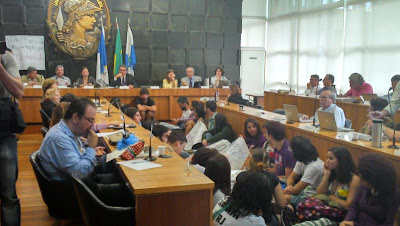 A FASUBRA, representada pelo coordenador-geral da Fasubra, Gibran Jordão, e os coordenadores Charles Brasil (Raça e Etnia) e Neusa Santana (Estaduais e Municipais), esteve presente na Universidade Federal do Rio de Janeiro, na quinta-feira (23/05), quando acompanhou a reunião do conselho universitário, que depois de muita pressão com manifestações de Docentes, Técnicos e estudantes não aprovou a EBSERH.