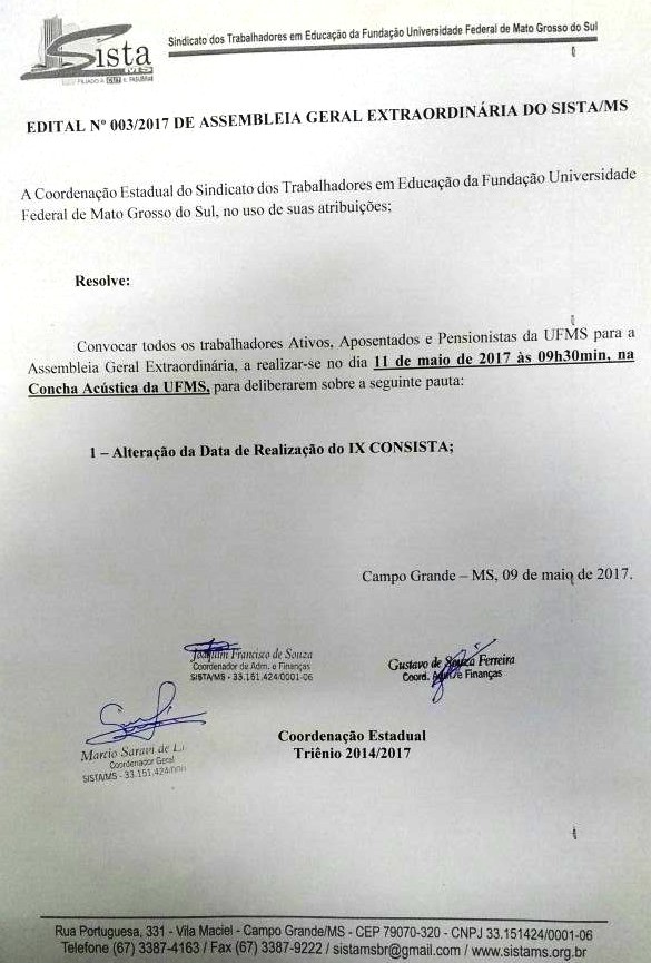 Sindicato dos Trabalhadores das Instituições Federais de Ensino do Estado de Mato Grosso do Sul