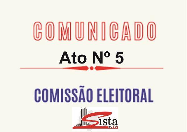Publicamos para conhecimento o Ato Nº 5 da Comissão Eleitoral Central do Sista/MS, relativo às fichas de inscrições das chapas.