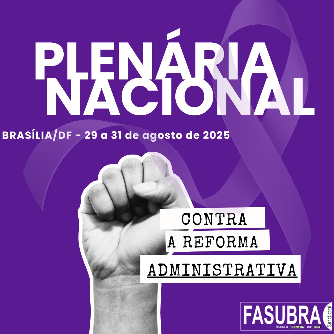A FASUBRA Sindical promoverá, nos dias 29, 30 e 31 de agosto, Plenária Nacional, evento que reunirá delegadas e delegados representando suas entidades de base, com o objetivo de debater a conjuntura e deliberar sobre temas de interesse da categoria, além de definir os encaminhamentos para o próximo período.