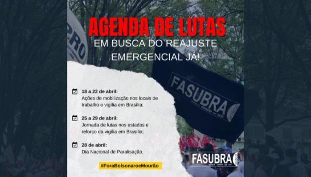 – Fortalecer as mobilizações por meio de atos, divulgação das campanhas da FASUBRA e do FONASEFE virtual, outdoors, busdoor nos estados;