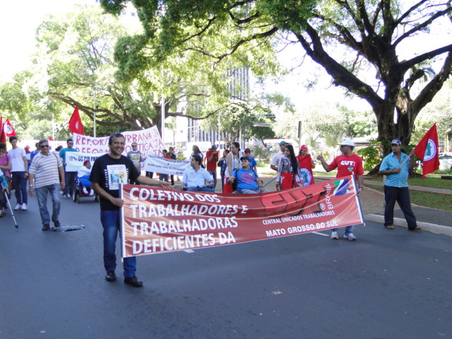 Trabalhadores com deficiência participaram da manifestação do dia 11 de julho, abrindo a passeata em Campo Grande