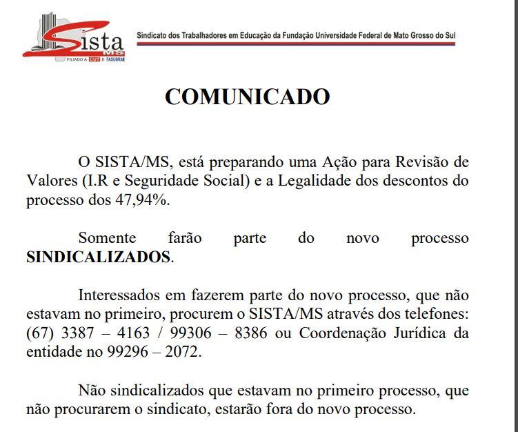 | RELAÇÃO DE AUTORES NÃO FILIADOS DO PROCESSO DOS 47,94% DO SISTA/MS | |