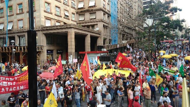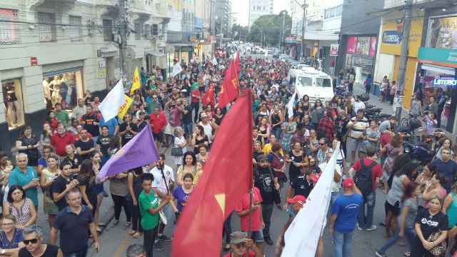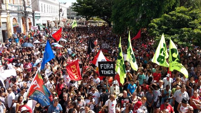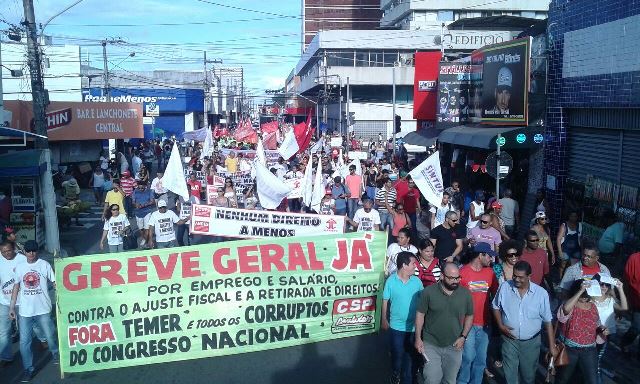 Destaque para a marcha unificada entre trabalhadores dos setores público e privado. Centenas de cidadãos do campo e da cidade percorreram as principais vias da cidade, entoando cânticos de fora Temer e de nenhum direito a menos.