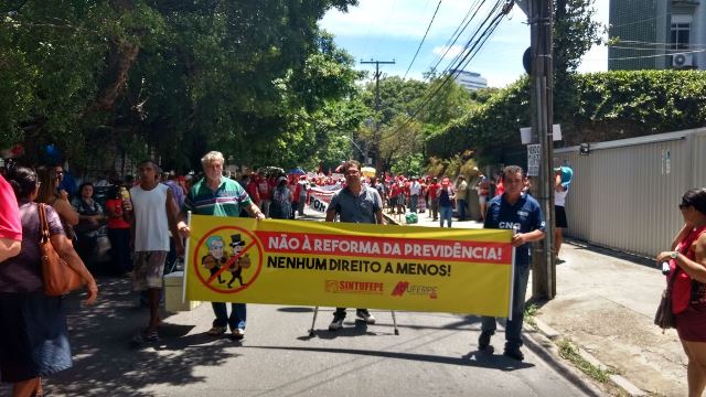 Seis mil manifestantes partiram da Praça da República até a Assembleia Legislativa e entregaram aos deputados um manifesto de repúdio à Reforma da Previdência.