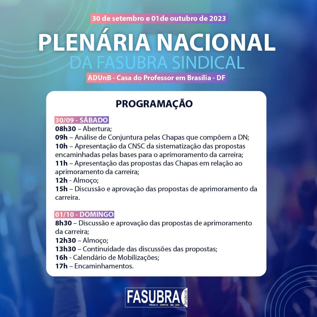 De 30 de setembro à 1º de outubro de 2023, a FASUBRA realizou mais uma Plenária Nacional para discutir, aprovar propostas e fazer encaminhamentos dobre o Tema “Carreira”.