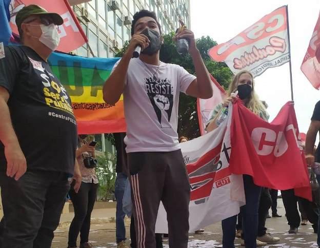 Segundo o estudante de História da UFMS, Victor Prado, que está em Brasília junto com a delegação de MS, hoje (7) foi mais um dia de protesto. “Hoje pela manhã nos unimos com outras federações e sindicatos, como a ANDES, FASUBRA e SINASEFE, para fazer uma mobilização que começou no Espaço do Servidor e foi até o Ministério da Economia cobrando do Paulo Guedes explicação sobre o paraíso fiscal e contra a PEC 32. Estudantes de Brasília também estiveram presente. Em determinado momento jogamos imagens de dólar manchadas de sangue e jogamos em frente ao ministério. Foi um ato que movimentou alguns sindicatos federais, federações e bastante mobilização estudantil. A delegação de MS estava presente.”