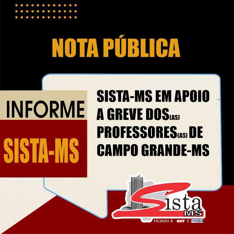 A GREVE dos(as) Profissionais em Educação da Reme (Rede Municipal de Ensino) de Campo Grande-MS é LEGÍTIMA e está deliberada pela categoria, em Assembleia Geral, até o dia 09 de dezembro. A Direção do SISTA-MS apoia o movimento grevista e está junta na cobrança para que a Prefeita Adriane cumpra a Lei Municipal n. 6.796/2022 – Piso 20 horas. A luta não é somente da ACP (Sindicato Campo-grandense dos Profissionais da Educação Pública) e sim de todo movimento sindical, social e da população sul-mato-grossense pela valorização dos(as) Profissionais em Educação e milhares de jovens e crianças que também serão penalizadas por falta de compromisso dos(as) gestores(as) do município. O SISTA-MS apoia a greve dos(as) Professores(as) de Campo Grande-MS e reitera que nenhum Sindicato fica satisfeito em paralisar suas atividades, mas quando um(a) gestor(a) não cumpre a Lei que já havia sido acordada com a categoria, o que resta a esses(as) valentes(as) trabalhadores e trabalhadoras é lutar. #SISTA-MS em Defesa da Classe Trabalhadora!