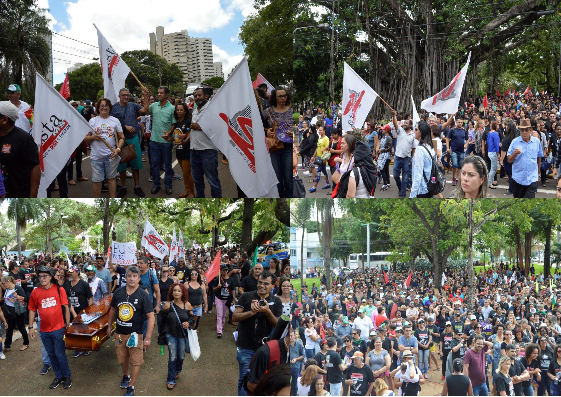 Mais de 10 mil trabalhadores de empresas públicas e privadas de Campo Grande e interior de Mato Grosso do Sul participaram na manhã desta sexta-feira (22) das manifestações em praça pública e pelas principais ruas do comércio central da Capital em protesto à reforma da Previdência. O evento foi simultâneo por todo Brasil neste que foi considerado o Dia Nacional de Mobilização Contra a Reforma da Previdência.