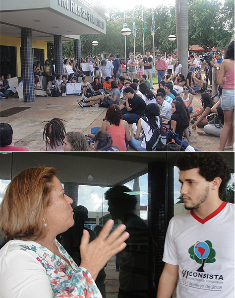 A reitoria Célia Maria de Oliveira surpreendeu os alunos na trade de ontem, que esperavam passar a noite na universidade, até que a reitora os atendesse e, cerca de 20 minutos depois do início da manifestação, desceu para conversar com os alunos.