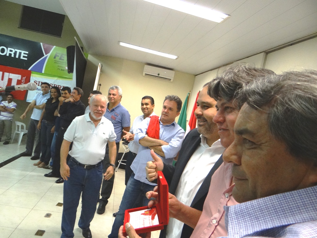| Walter Sousa entre Lucivaldo Santos (E), da coordenação geral do SISTA, e Wagner Freitas (D), presidente nacional da CUT |