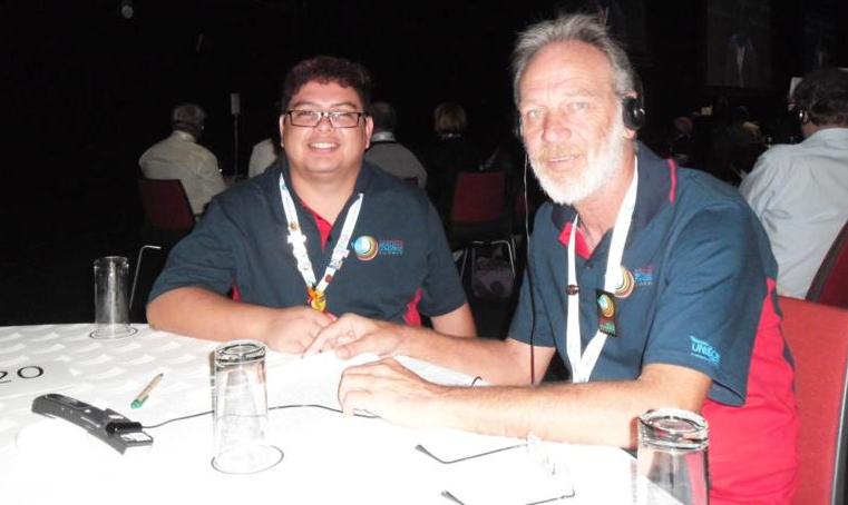 Diego Gonçalves Rodrigues e Paulo Henrique dos Santos, da Fasubra Sindical, na cidade Durban na África do Sul: Congresso Mundial da Internacional do Serviço Público (ISP)
