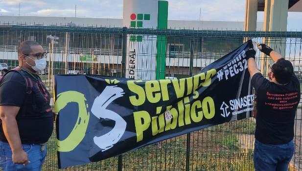 CENSURA (inclusive com a ameaça do uso de força policial), obrigou a retirada de faixas e cartazes que denunciavam o desmonte e a destruição dos serviços públicos, praticados pelo Governo Federal.