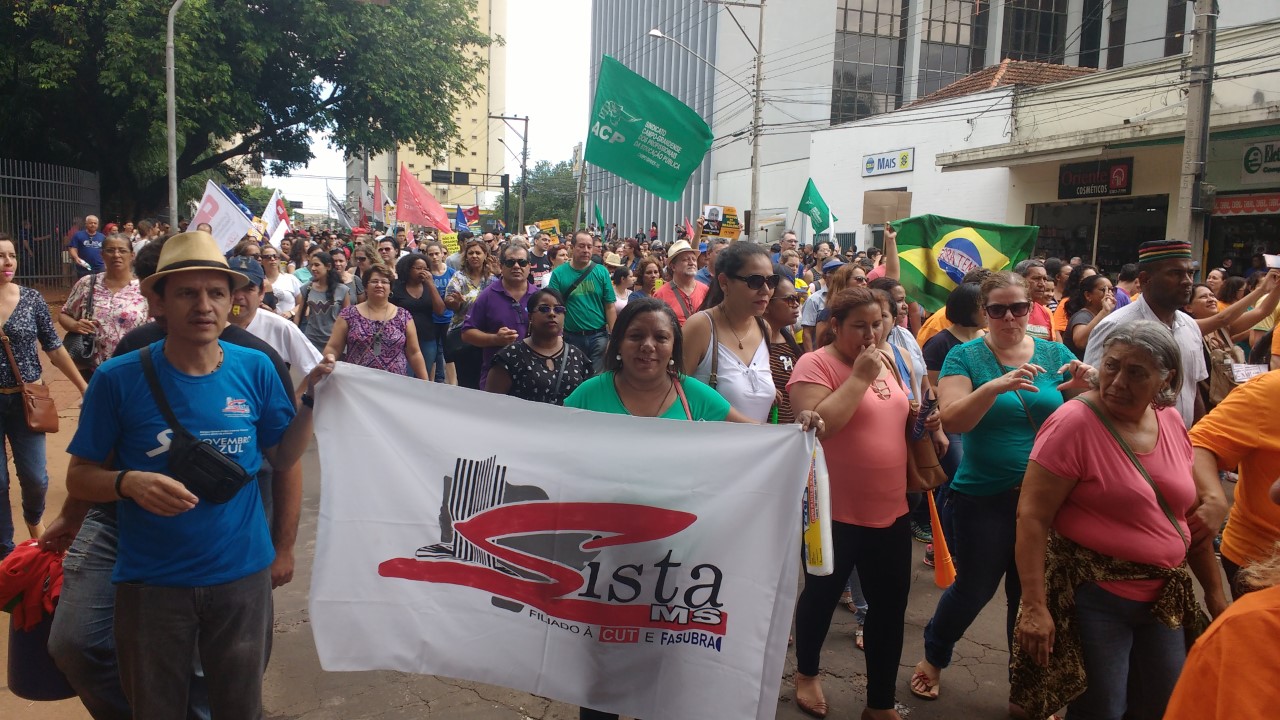 O ato na capital foi convocado por todas as centrais sindicais representadas em MS e teve a participação de sindicatos de trabalhadores dos mais diferentes segmentos.