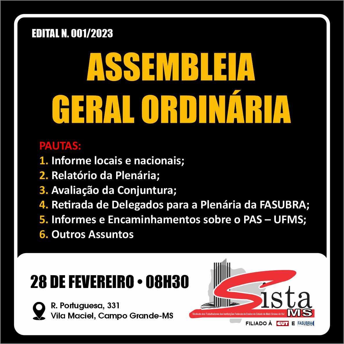 Edital nº 001-2023 - Assembleia Geral Ordinária do SISTA-MS